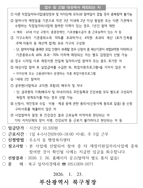「2026년 상반기 지역공동체일자리사업」참여자 모집을 아래와 같이 공고합니다.